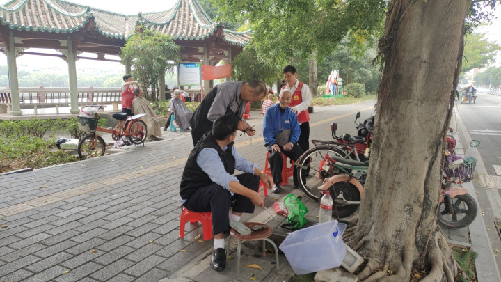 管事面孔包括剪发、磨刀、筷子理疗等,各项行径有序开展。志愿者区年老艰难连续,刚理完发又回身为民众磨刀;陈大夫的筷子理疗管事尤其受接待,不少住户早晨7点多便前来列队。一位大叔历程数次理疗后,手臂行径智商光显改善,连连向志愿者暗意感谢;还有民众成心从大泽镇赶来,暗意理疗后寝息和头部不适问题得到缓解,即便等候两小时也相配值得,并陈赞志愿者是“新期间的活雷锋”。