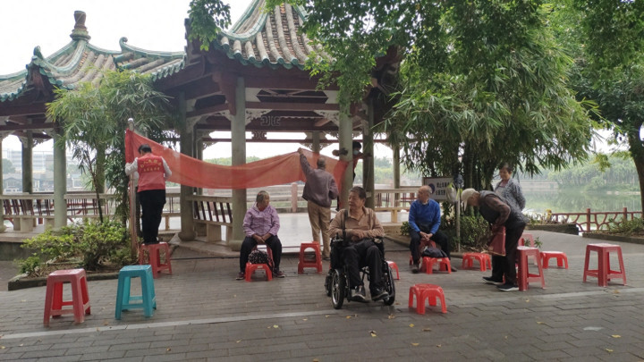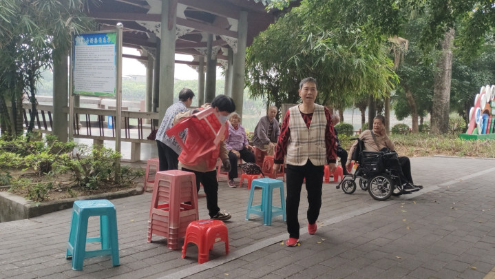 早晨,行径尚未初始,已有不少住户提前到来,并主动协助摆放凳子、吊挂横幅,现场飘溢着和解暖热的氛围。
