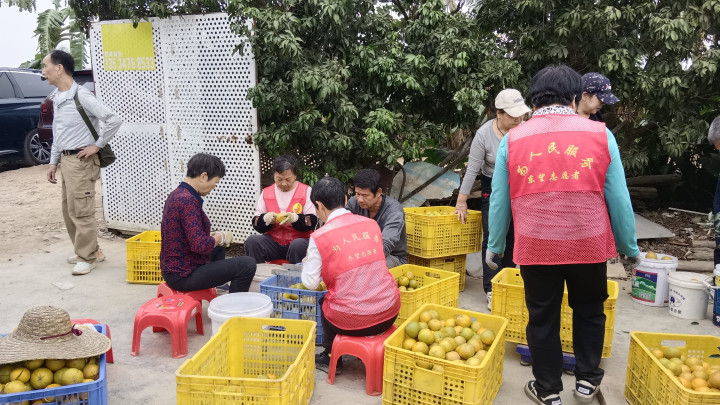便民行径铁心后,志愿者们又赶往果园,协助开展摘果、剥果皮等助农管事。
